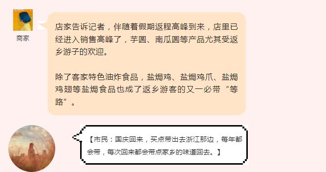 今天是“雙節(jié)”假期的最后一天,回梅過節(jié)的游子又將踏上返程;而各式各樣的伴手禮就成了必不可少的點綴。游子們紛紛開始購買土特產(chǎn),或贈送給親朋好友,或慰藉鄉(xiāng)愁,帶上家鄉(xiāng)的味道告別家鄉(xiāng)。